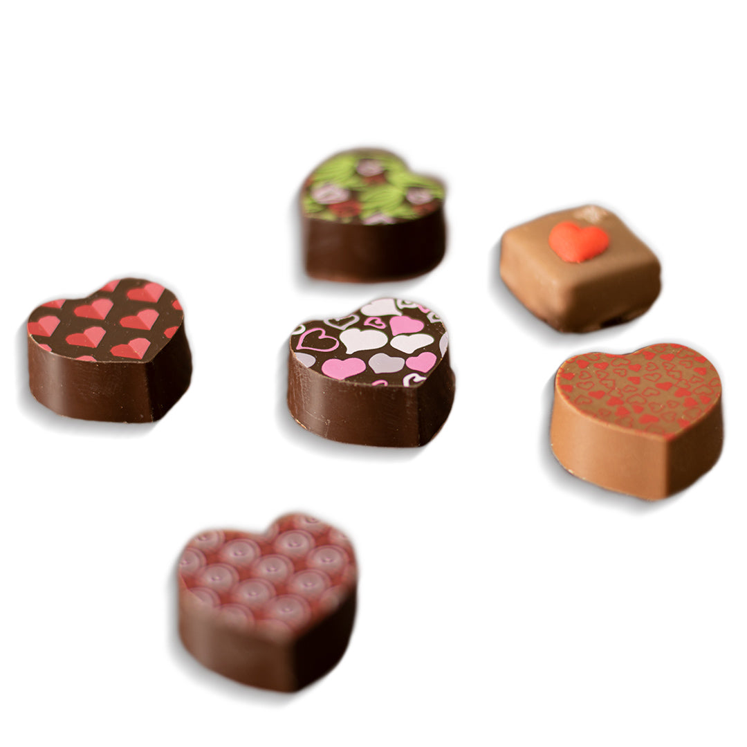 2 Dark Caramel: Thick and tasty caramel dipped in dark chocolate and decorated with sugar heart.