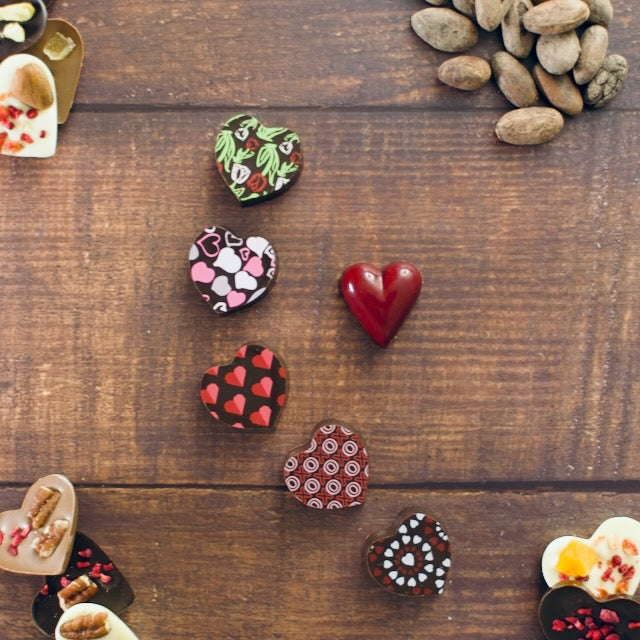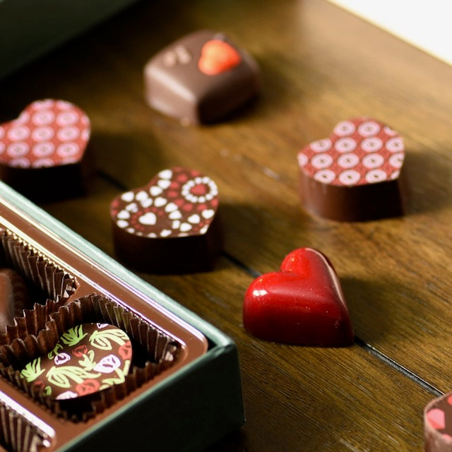 3 Dark Caramel Truffle: Dark chocolate heart filled with caramel and a couple of sea salt grains.